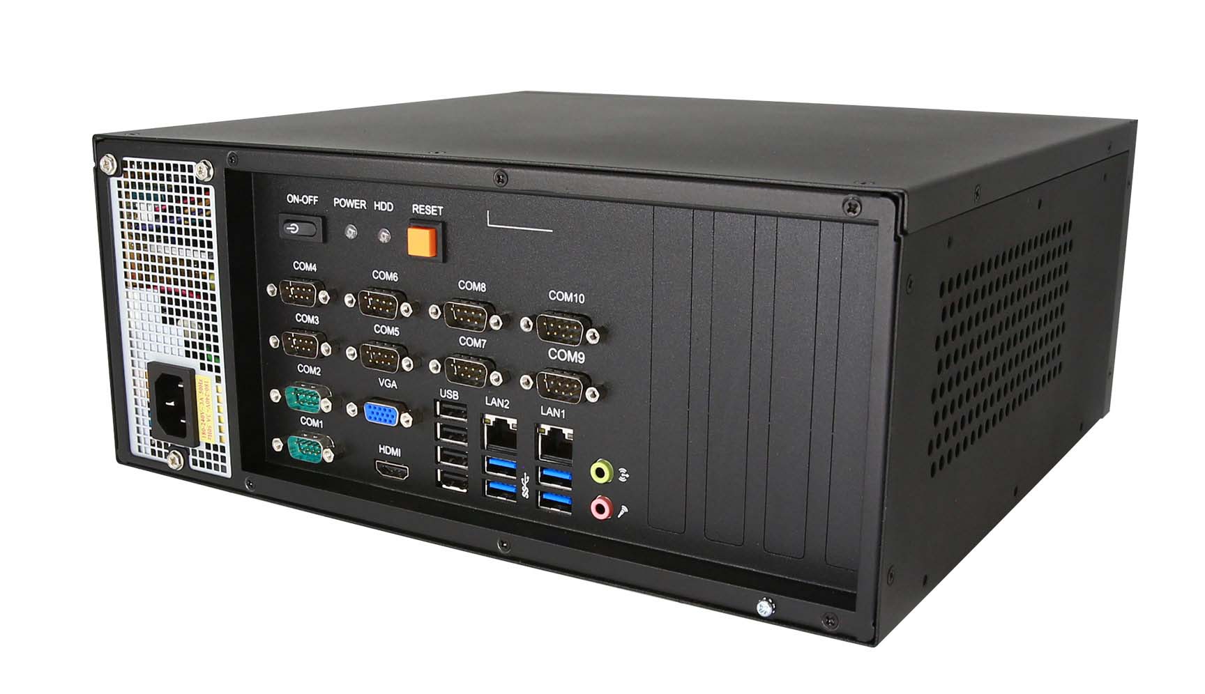 支持 10 x COM(2 x RS232/422/485, 8 x RS232),8 x USB(4 x USB2.0, 4 x USB3.0)