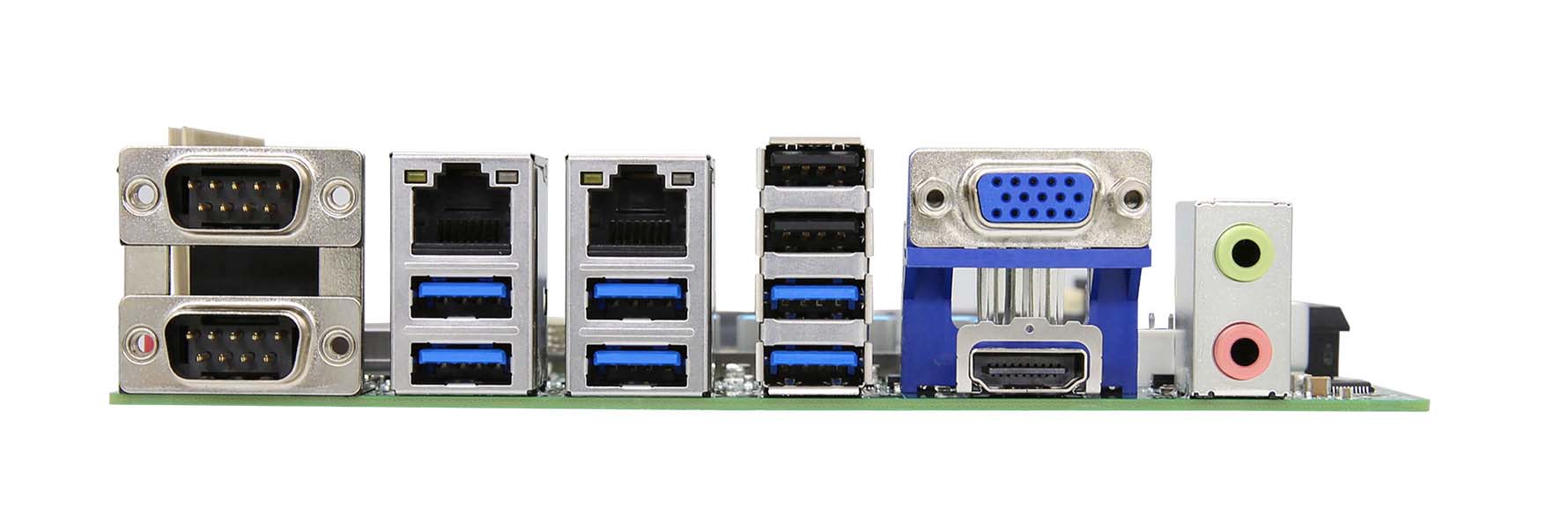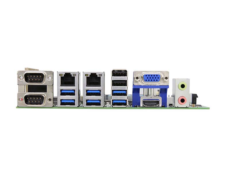 1 x VGA: max resolution up to 2048*1536@60Hz 1 x HDMI: max resolution up to 4K@60Hz 2 x USB 2.0, 6 x USB 3.0(Support Ennoconn USB SR Pro Technology) 2 x RJ45 Realtek (10/100/1000 Mbps) 2 x RS232/RS422/RS485 1 x Line-out, 1 x Mic-in